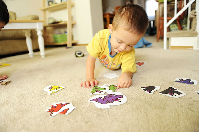 Both the boys got to do new games this week. Ethan matched dino pieces by color. He can match them even though he doesn’t quite know his colors yet