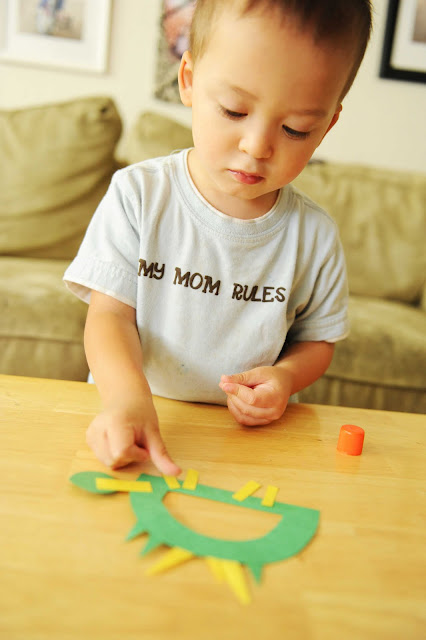 Silas attached clothespins to each dino card according to the number on the card. He really enjoyed this!