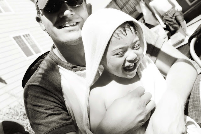 On Saturday we had a water party for him. Some sweet friends let us borrow their yard and we set up a slip and slide, kiddie pool, and sprinkler. Cheep and cheerful, but the kids had a great time!