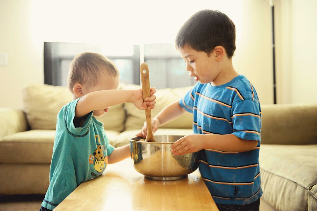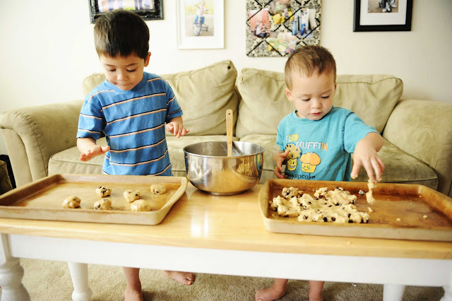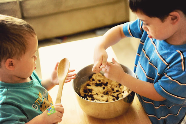 Then it was time for cookies! The boys love to help in the kitchen, measuring, pouring, covering themselves in flour…they LOVE to help!!