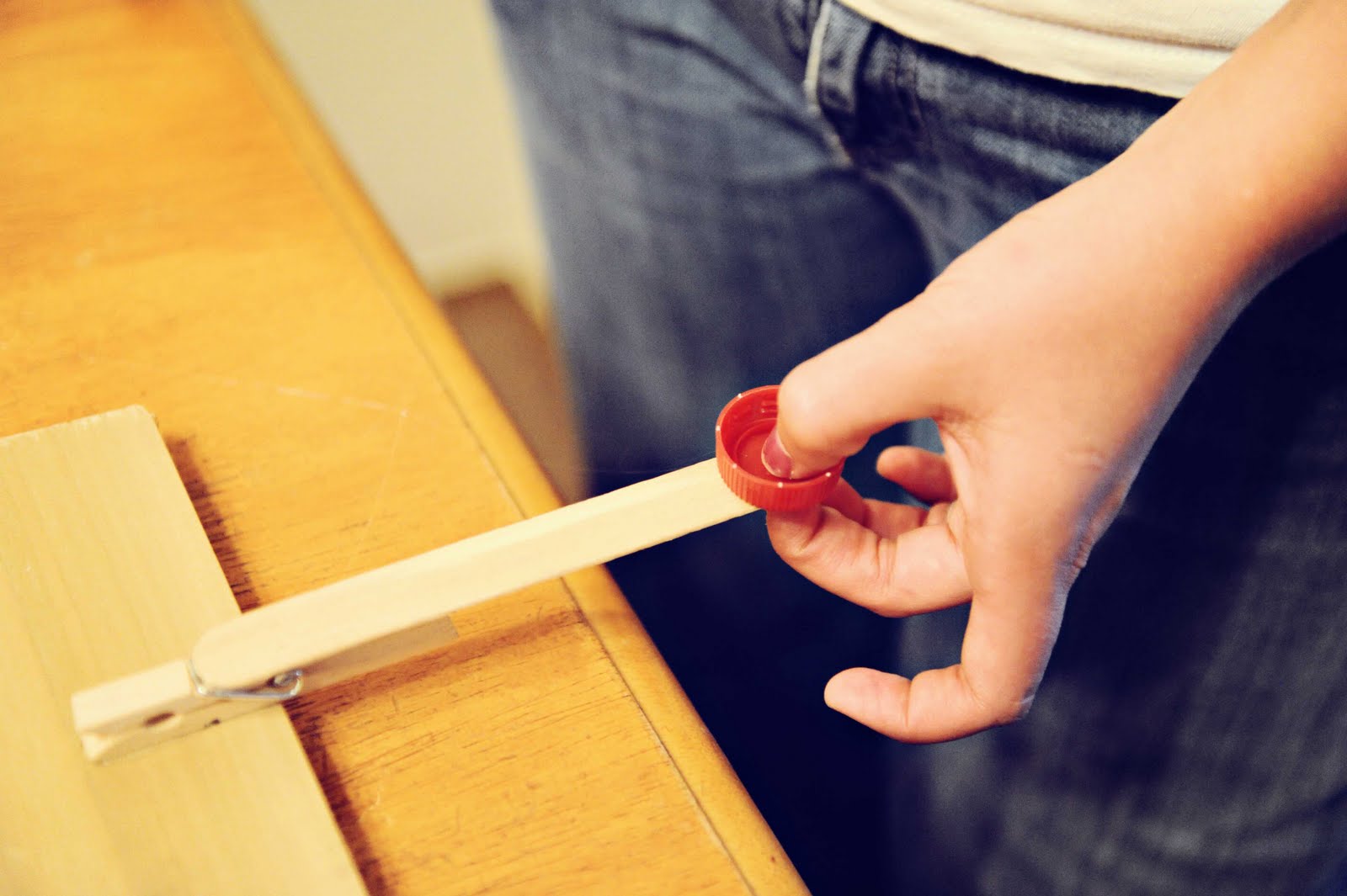Step 3: Glue the bottle cap to the other end of the craft stick