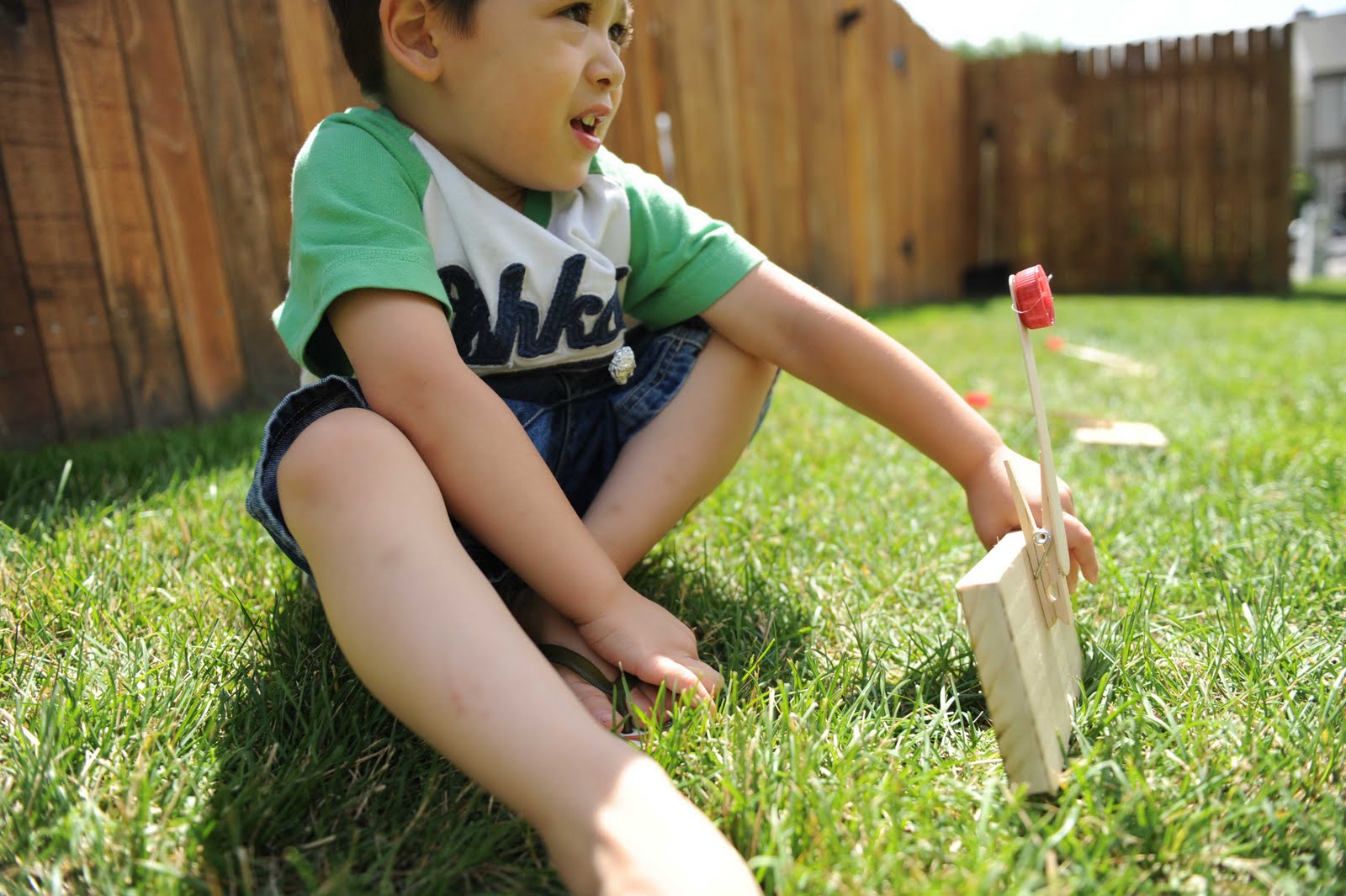 After the other kiddos got bored with flinging shiny pieces of ammo all over the yard, Silas continued to perfect his skills