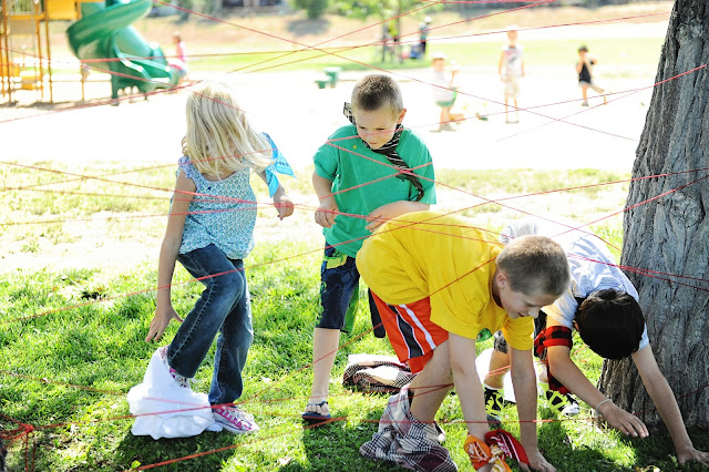 Okay, crawl through the red string (actually yarn) obstacle…