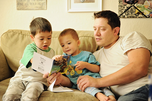 Ethan was so excited to give these gifts to him. He actually yelled, “Bupise! (surprise!) Look what I bought for you!!” as Silas came down the stairs 🙂 Notice Silas’ shooter in hand; he has it with him at all times.
